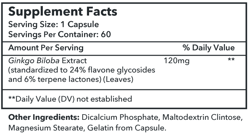 This all-natural supplement is only made from original and specially sourced herbs. Each capsule contains Ginkgo biloba extract.