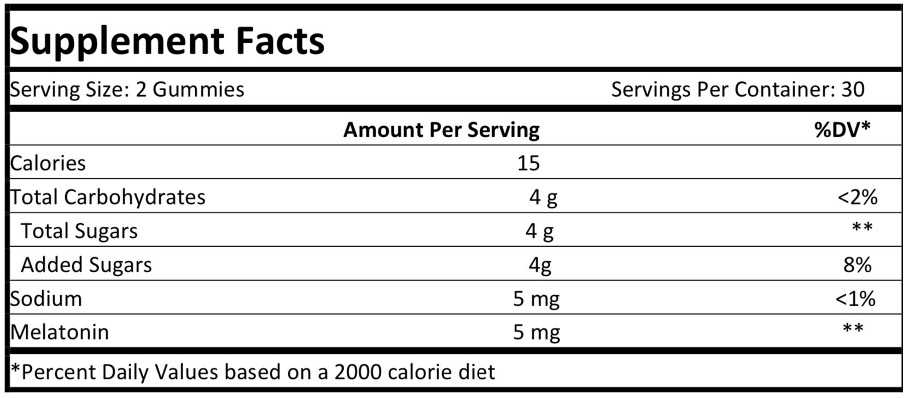 Two gummies are all you need for sweet dreams. Each gummy contains: