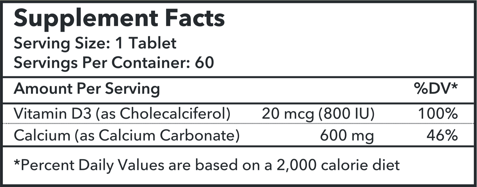 One tablet provides a welcome boost to your calcium levels with a little extra Vitamin D3 bonus. Each tablet contains: